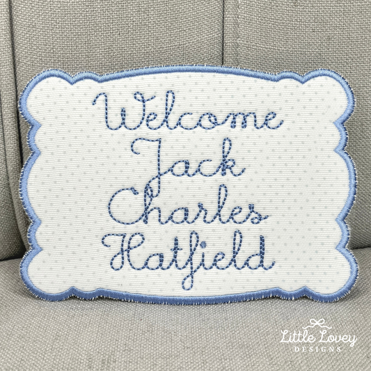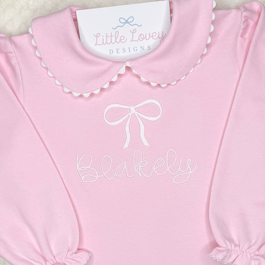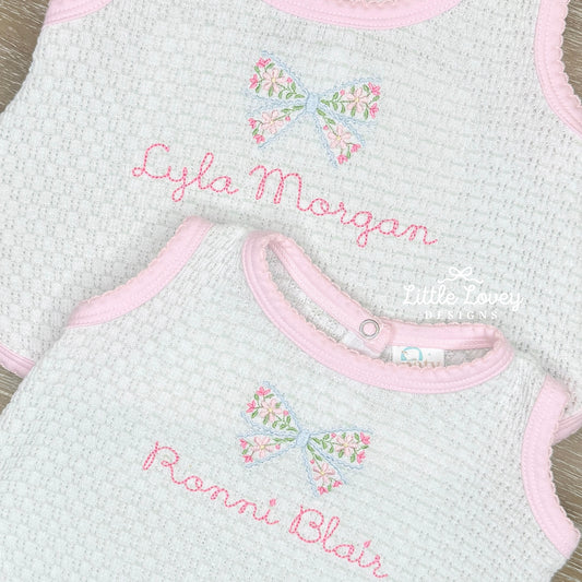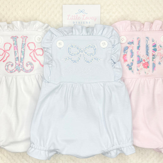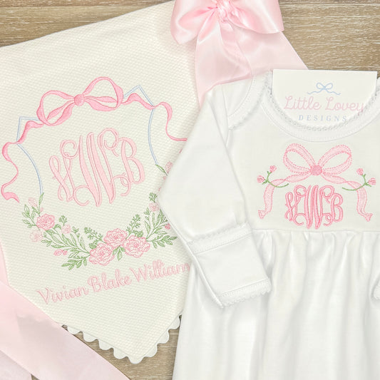 Personalized Gown, Ruffle Bib, and Ruffle Burp Cloth