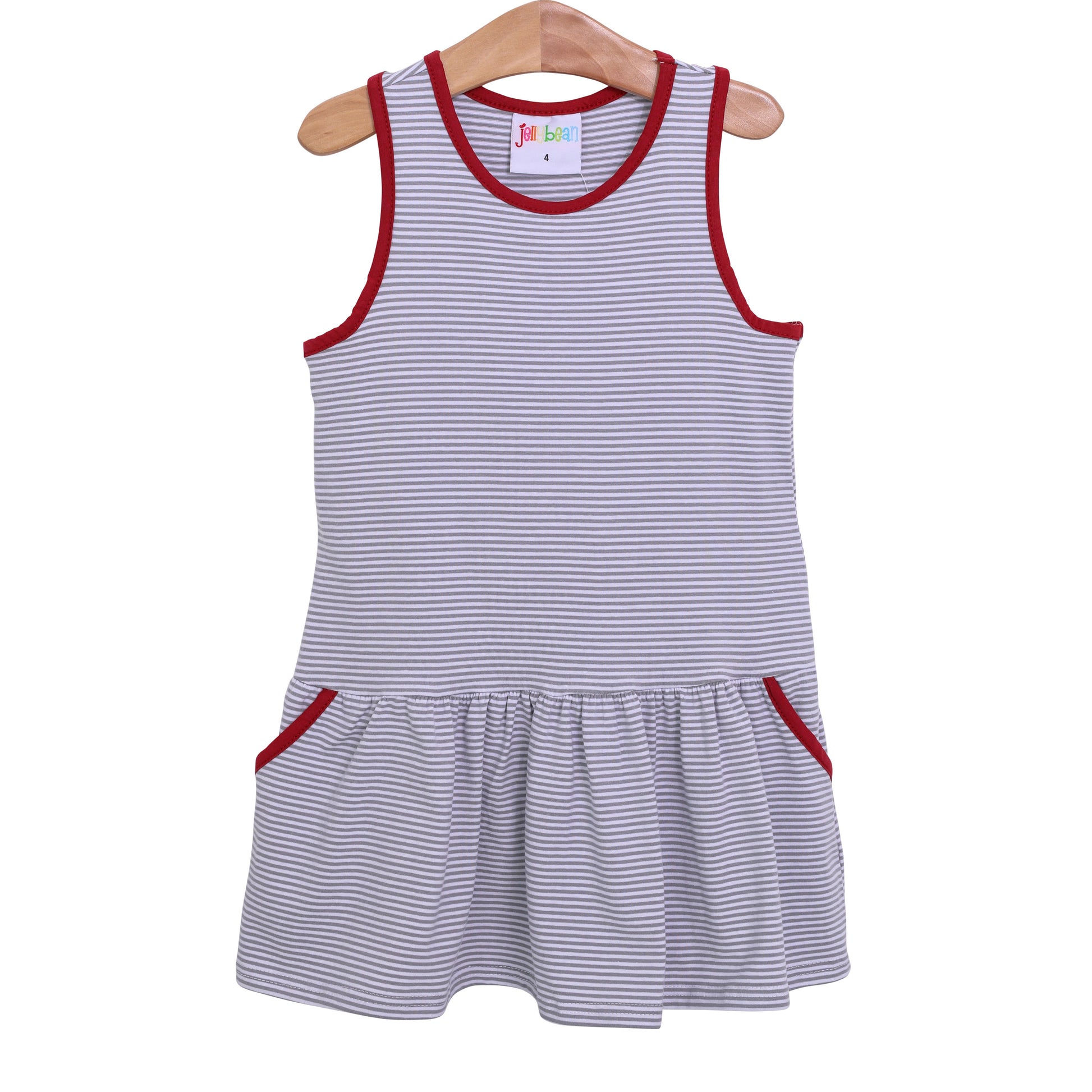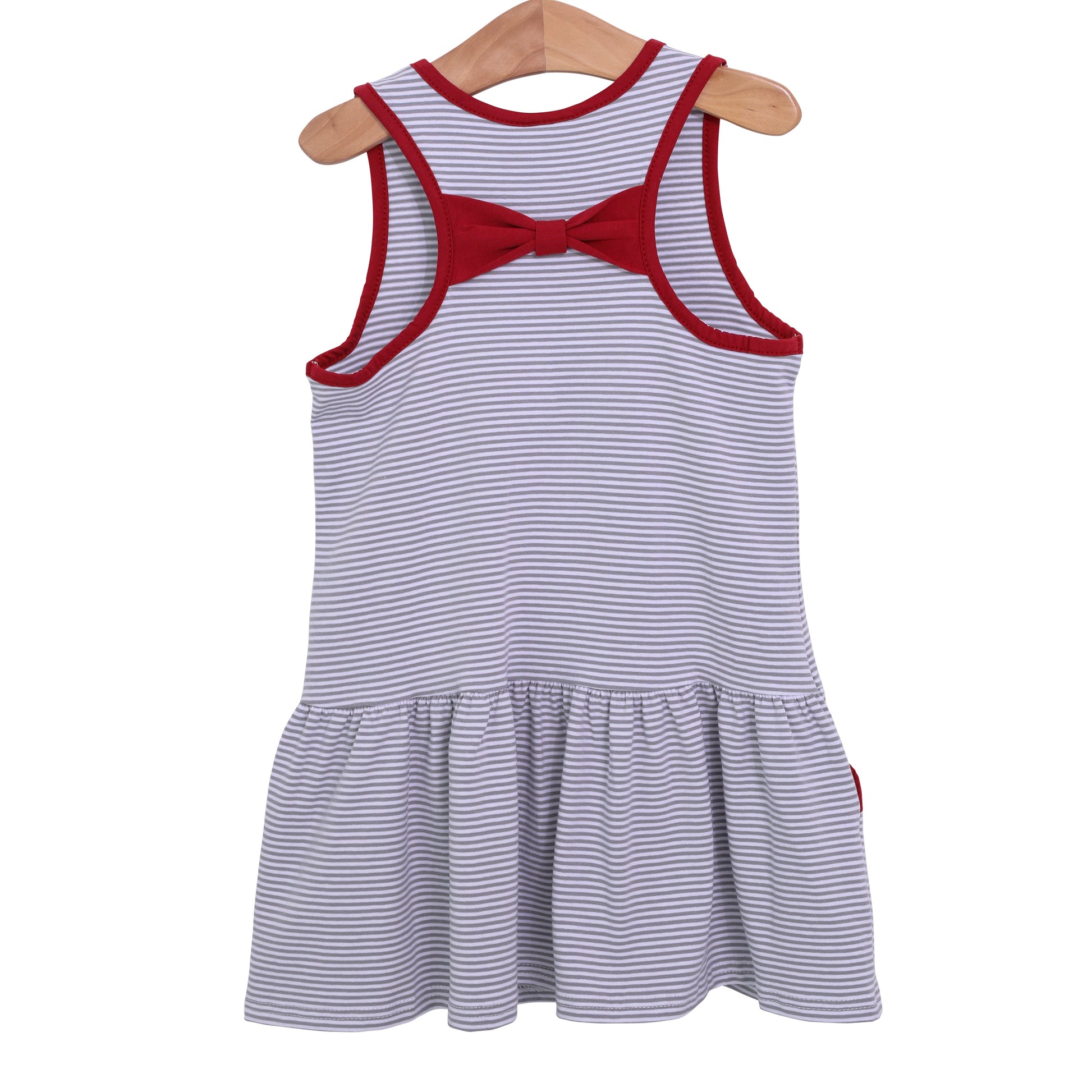 This dress is absolutely precious and perfect for game day! We love the drop waist with pockets, bow detailing on the back, and how sweet it looks with added personalization.