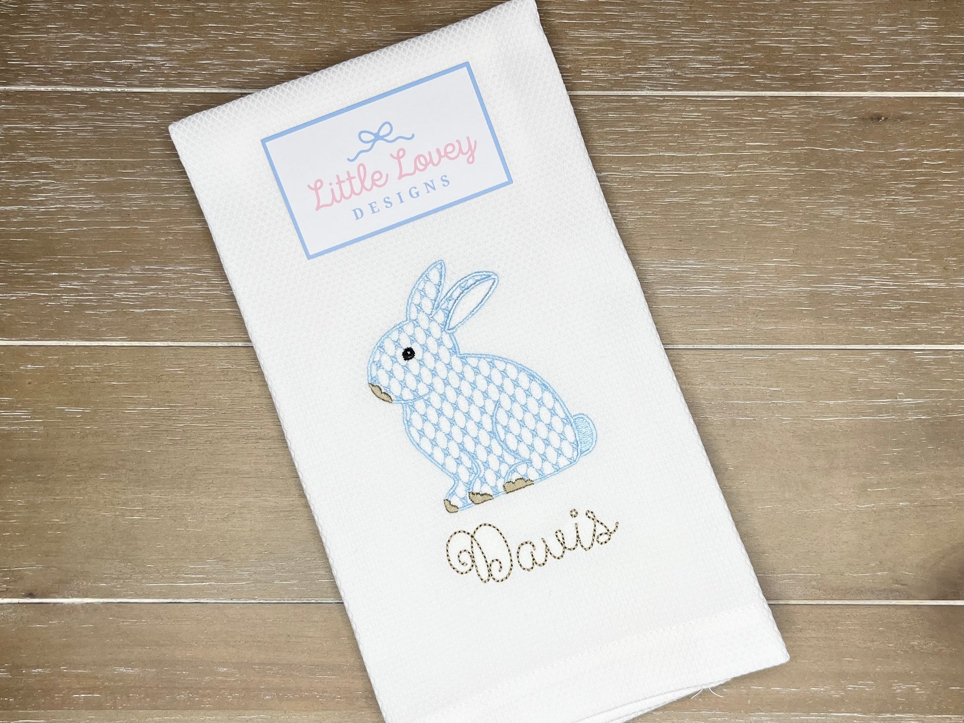 Our bunny huck towel is perfect for Easter and springtime. Huck towels are perfect for the kitchen and dressy enough for the bath as a guest towel. They also make wonderful gifts for every occasion.