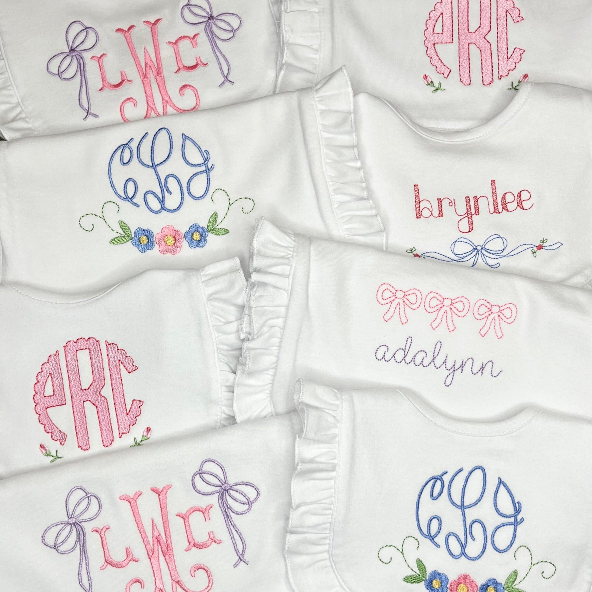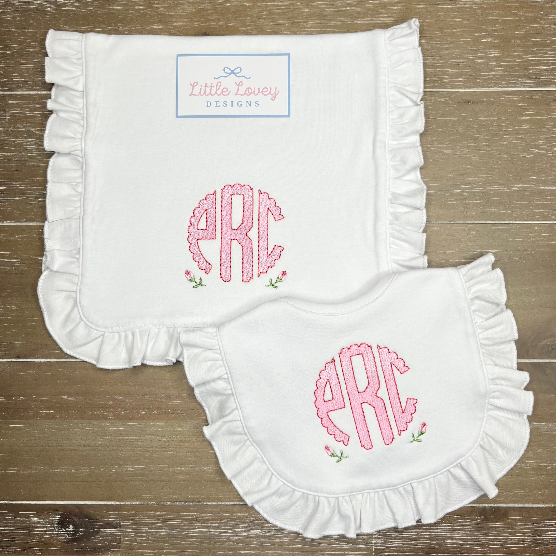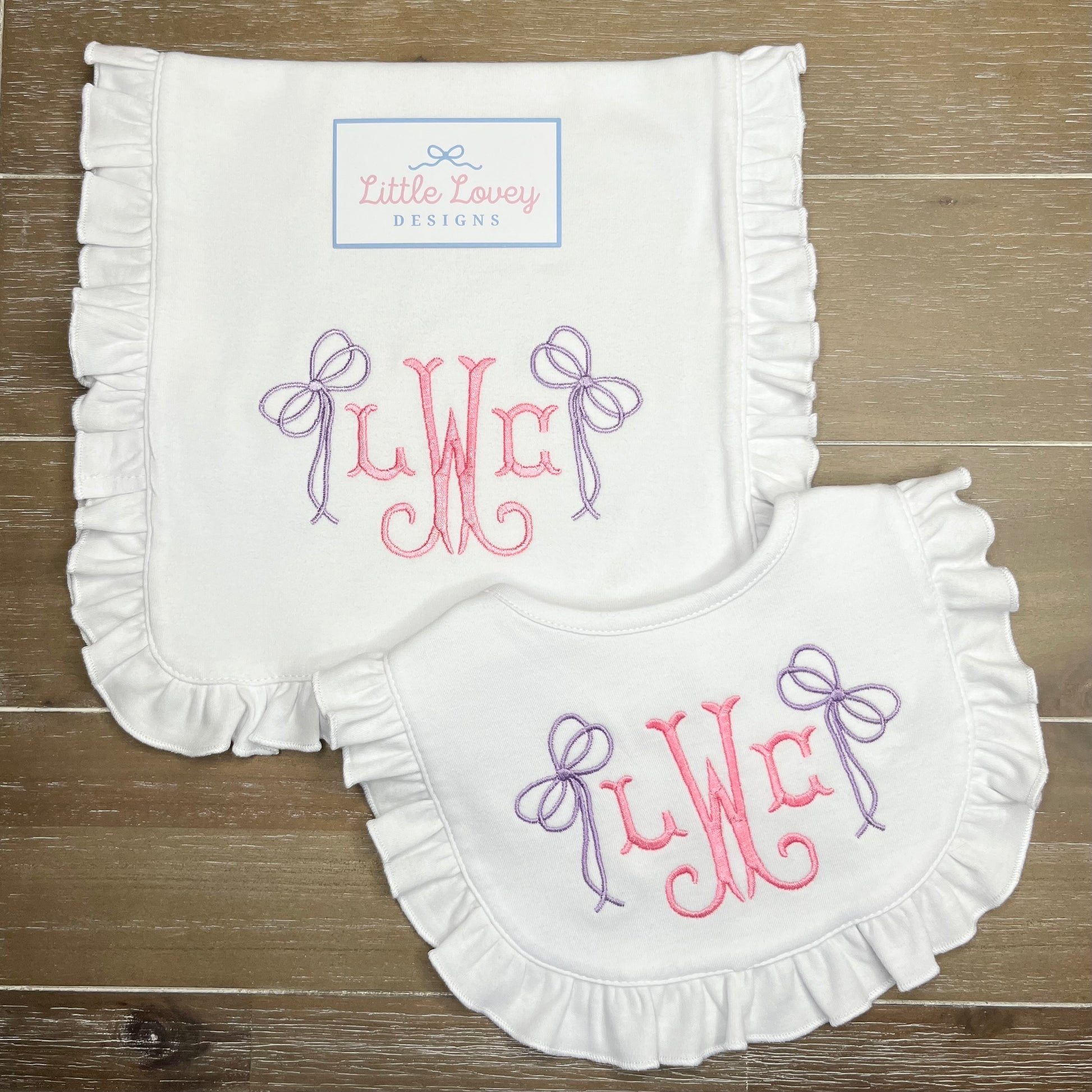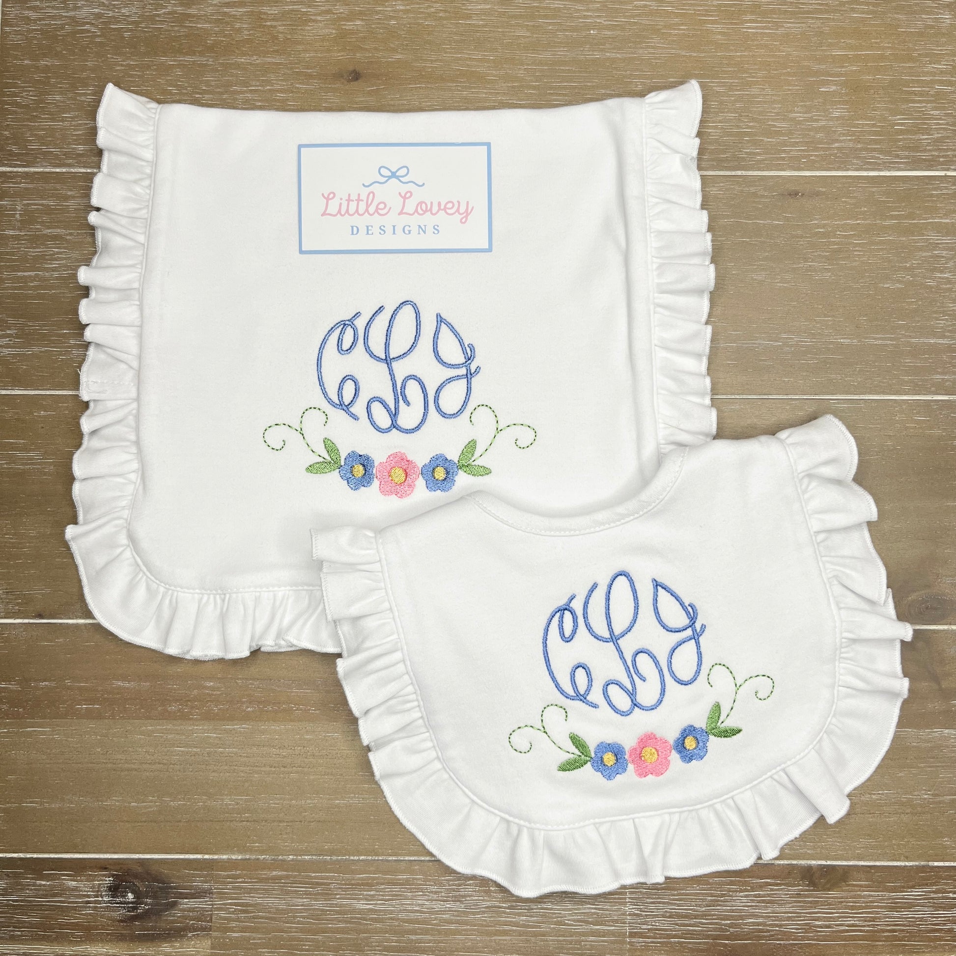 Personalized Ruffle Bib and Ruffle Burp Cloth (Any Design)