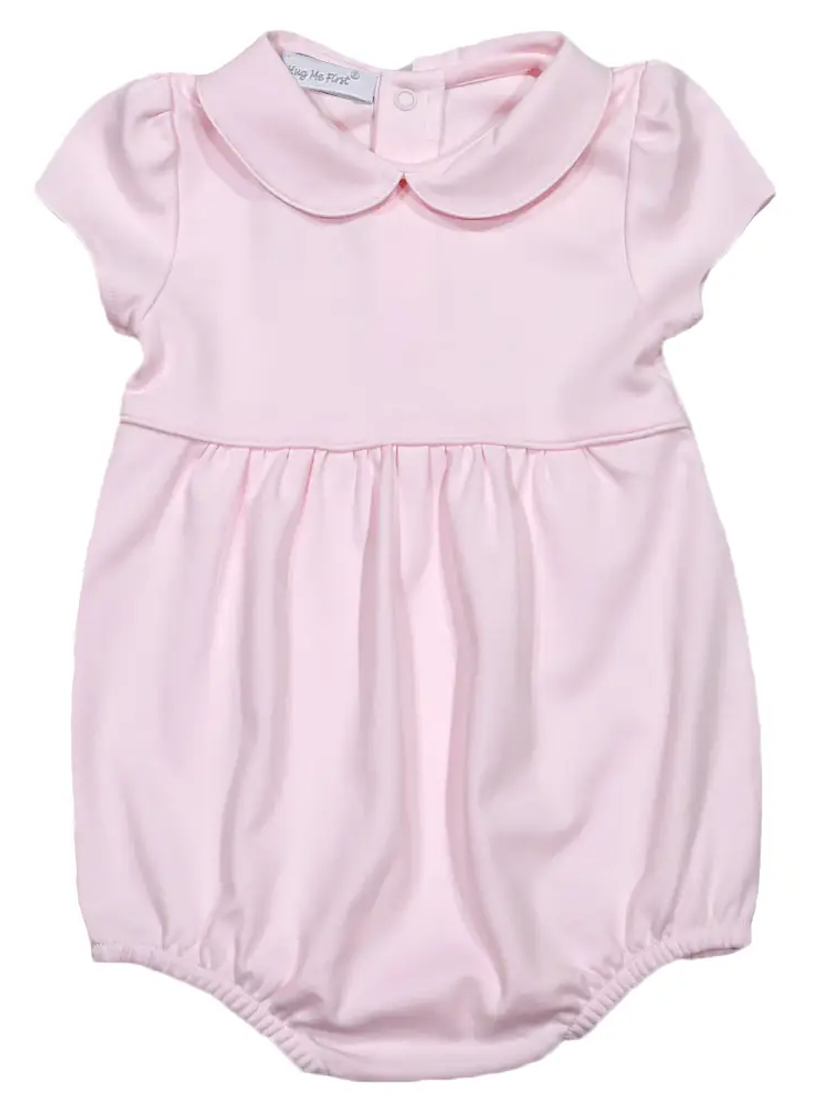This pink pima bubble is so soft and makes for a perfect timeless outfit for your little one. We love how precious it looks with a monogram or design.