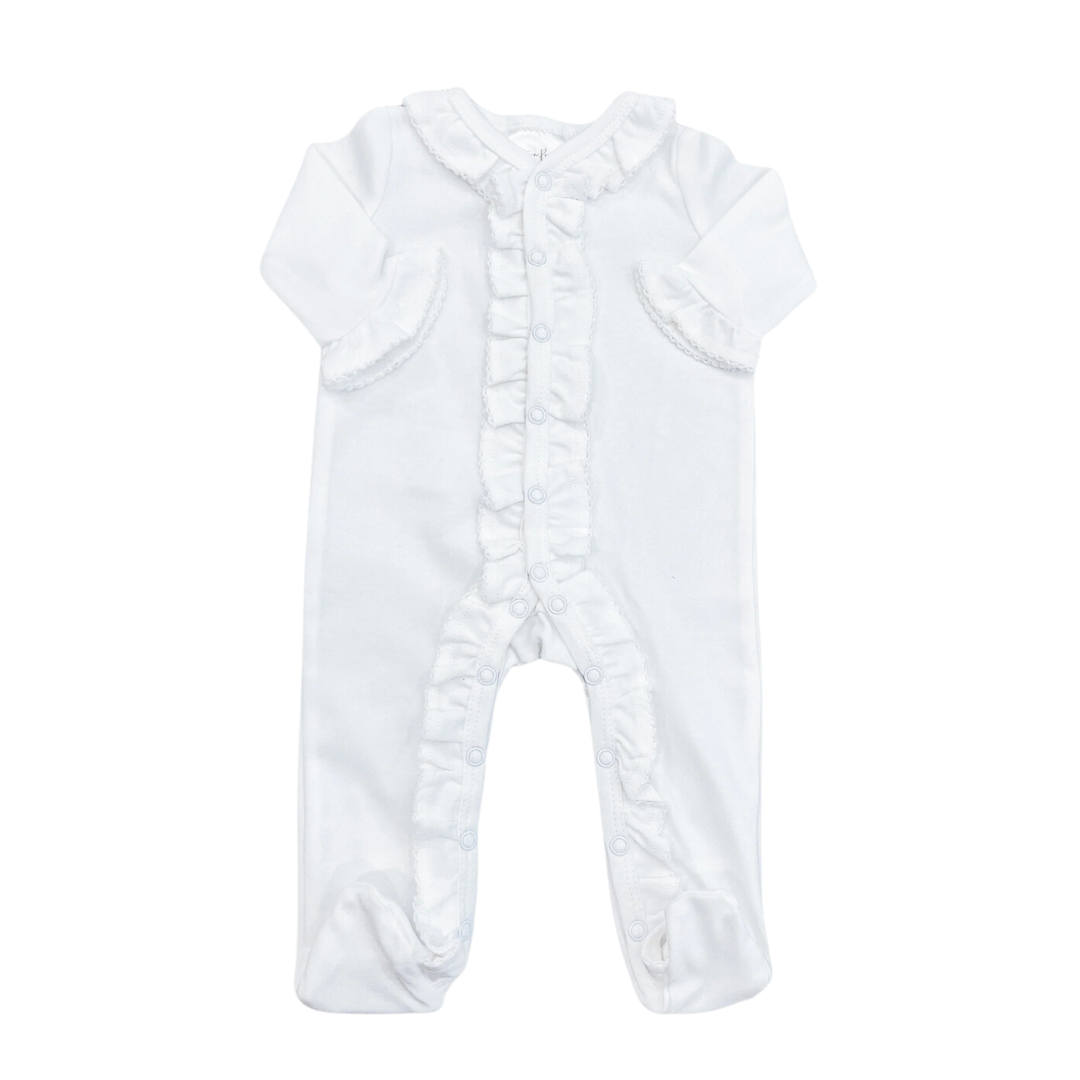 We love this precious double ruffle footie! The ruffle detail and added personalization make it so girly and sweet.