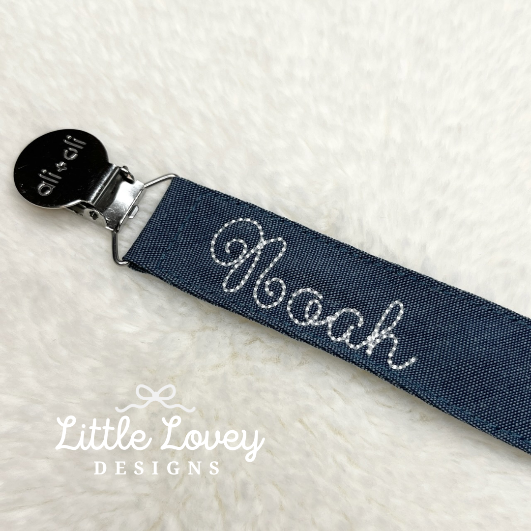 - This listing is for (1) embroidered pacifier clip.