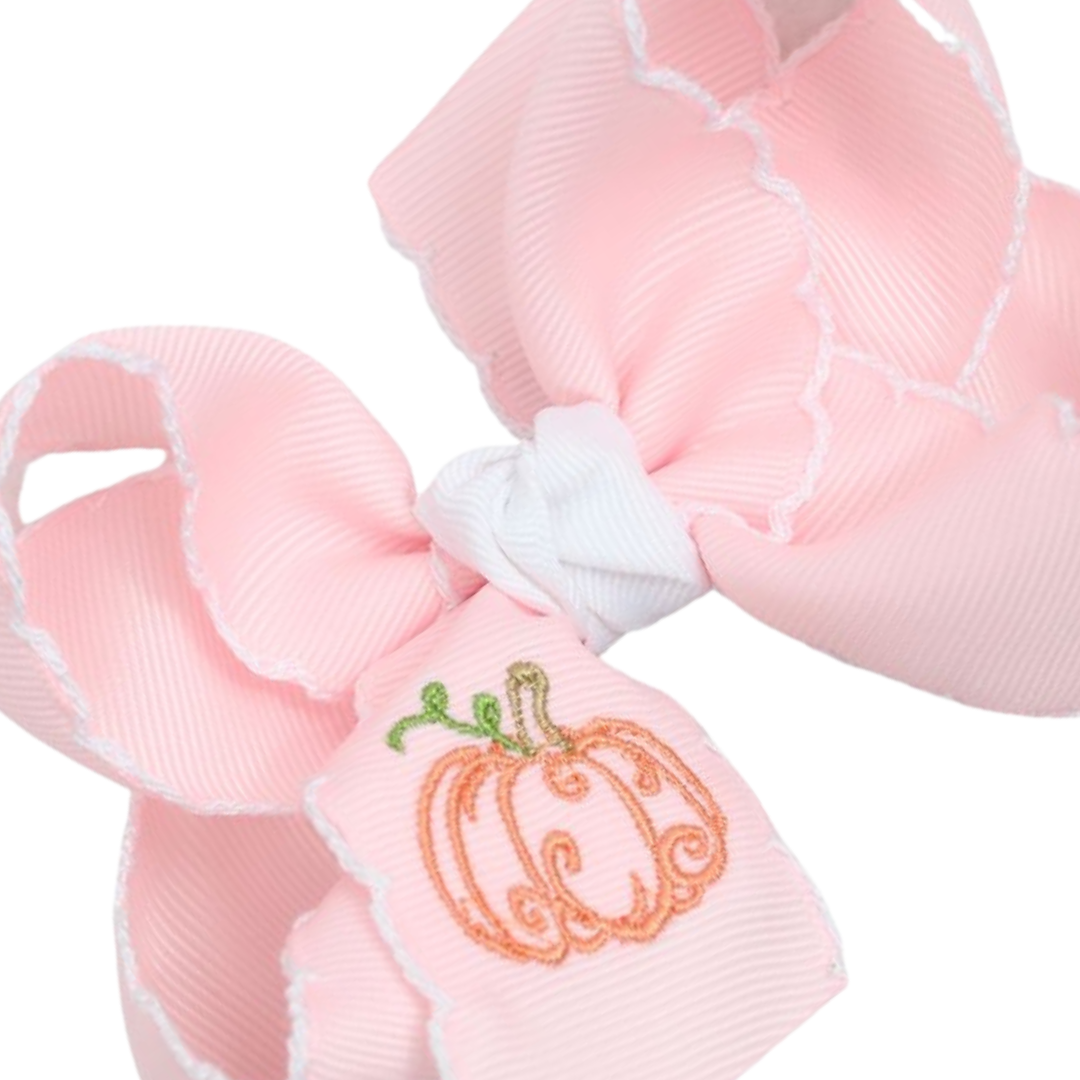 Embroidered Pumpkin Crochet Edge Hair Bow