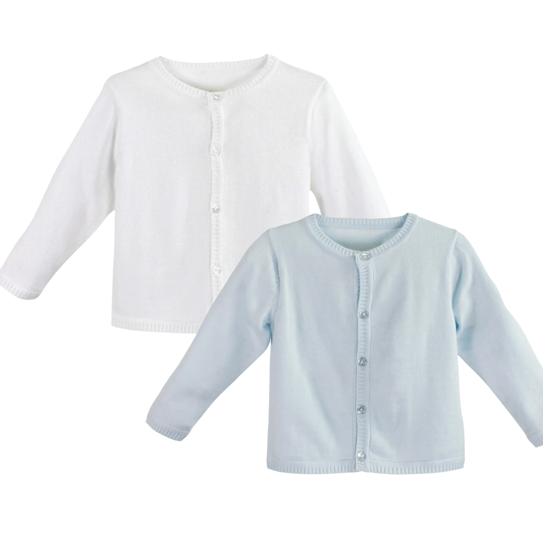 Our ladder edge cardigan sweaters make a wonderful accessory for family photos and special occasions. The beautifully detailed ladder edge adds a touch of interest to this already perfect basic sweater. They are the perfect addition to any dress or holiday outfit.