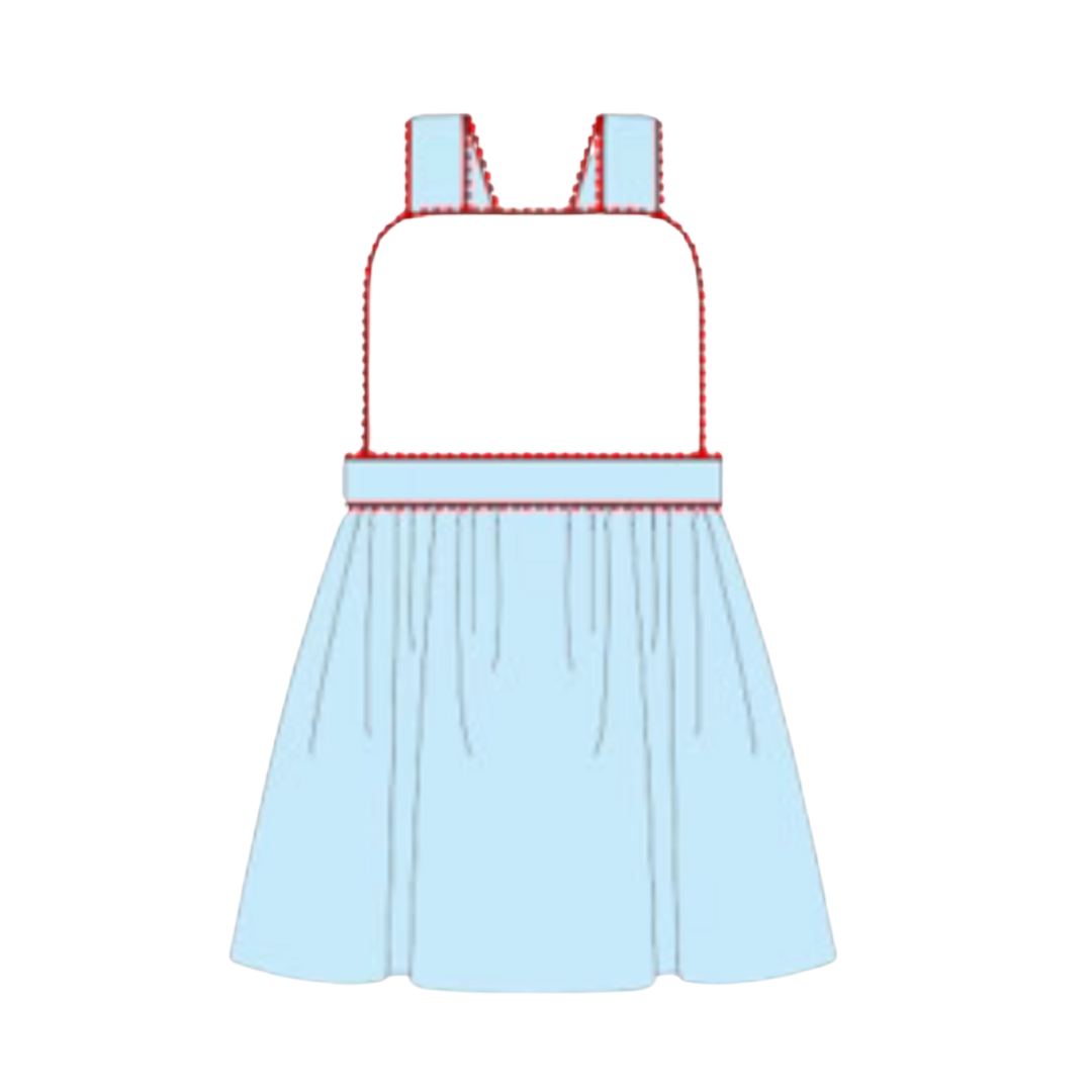 - This listing is for (1) embroidered light blue with red RicRac dress.