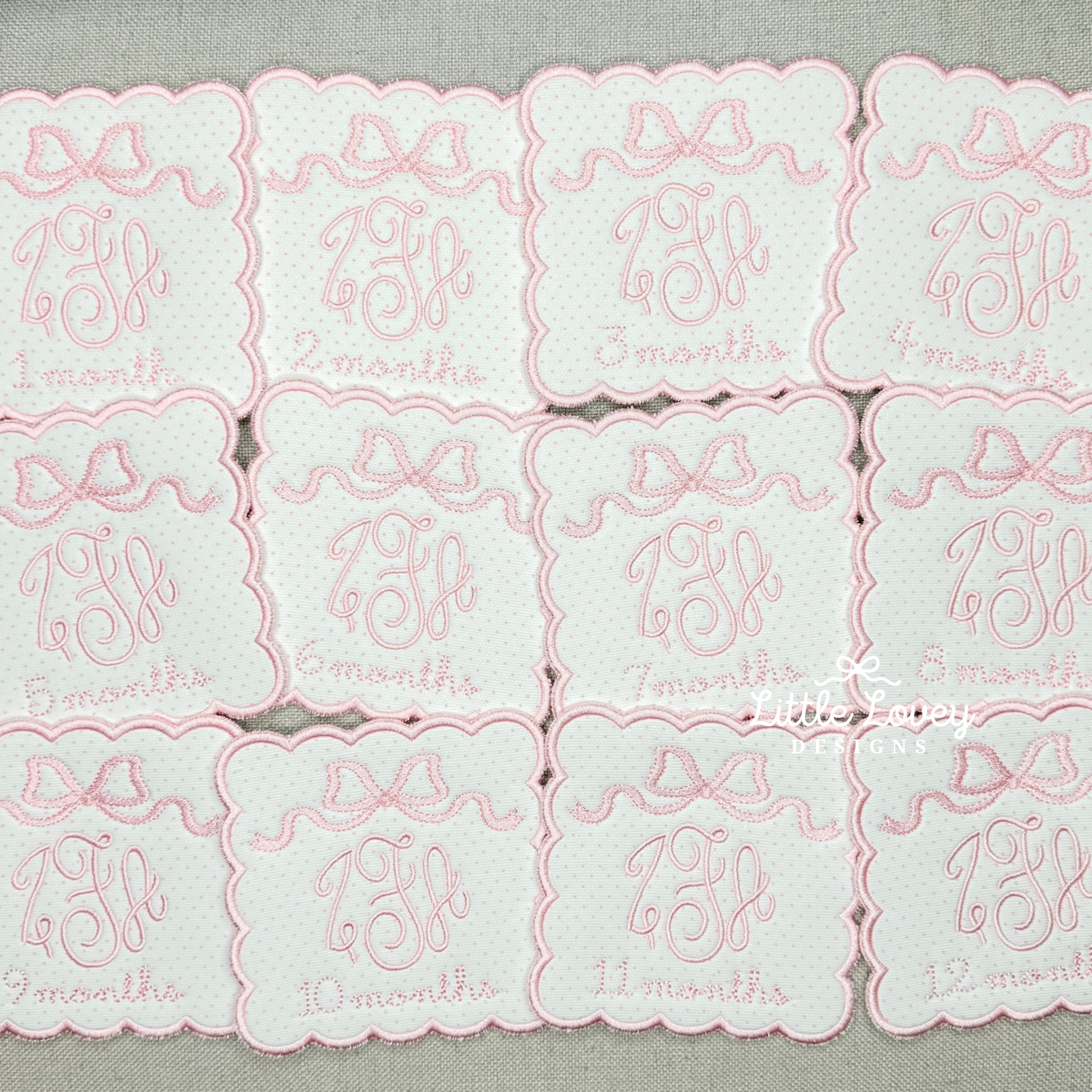 This listing is for a set of embroidered milestone cards. Our milestone cards are perfect for taking a monthly picture of your baby. This is an item you will want to keep and save forever as a treasured keepsake.