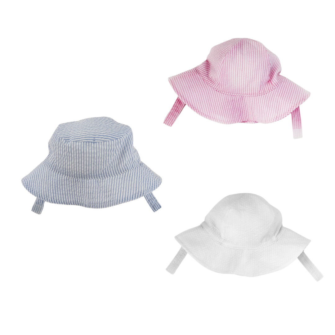 These seersucker sunhats are absolutely precious and perfect for the beach or everyday wear.