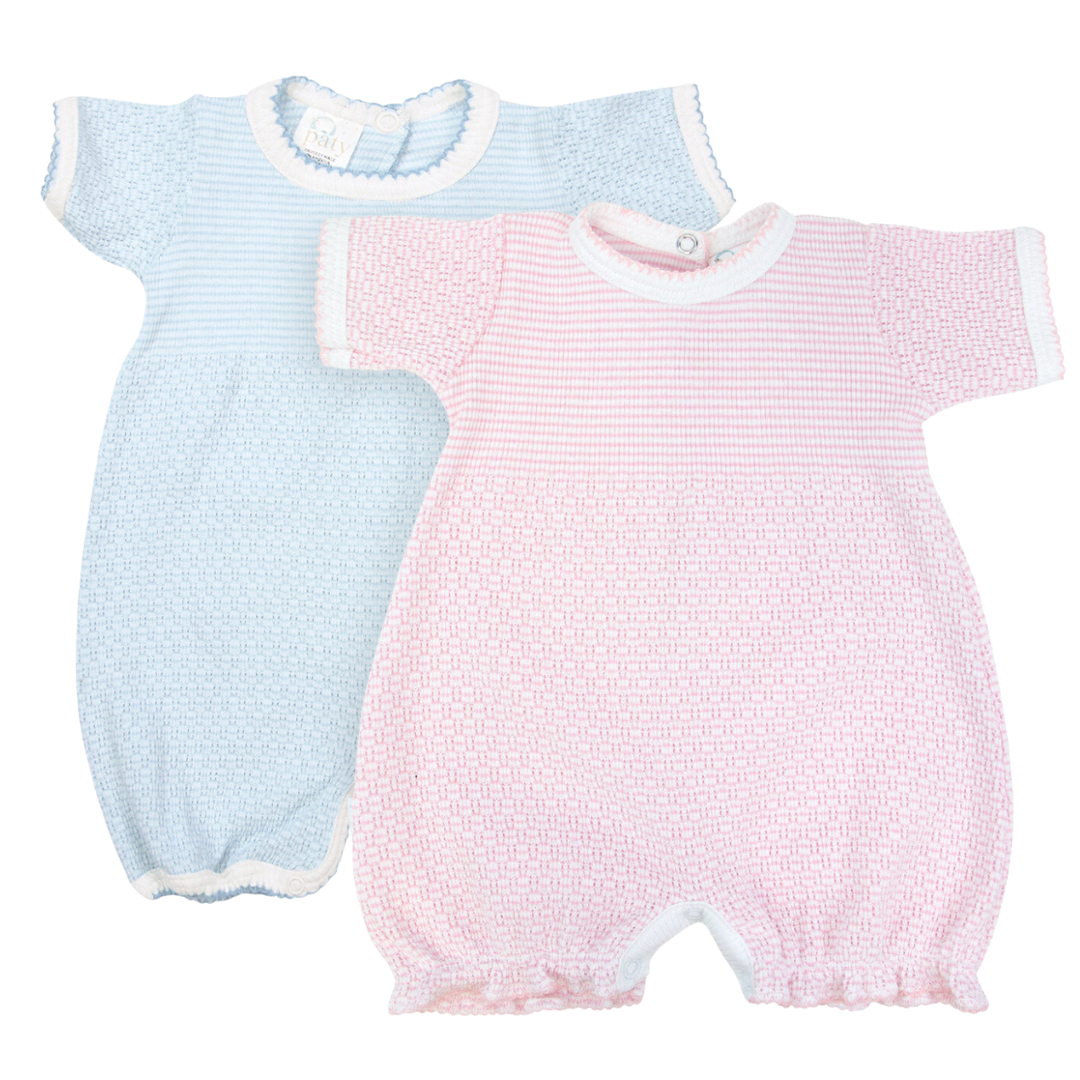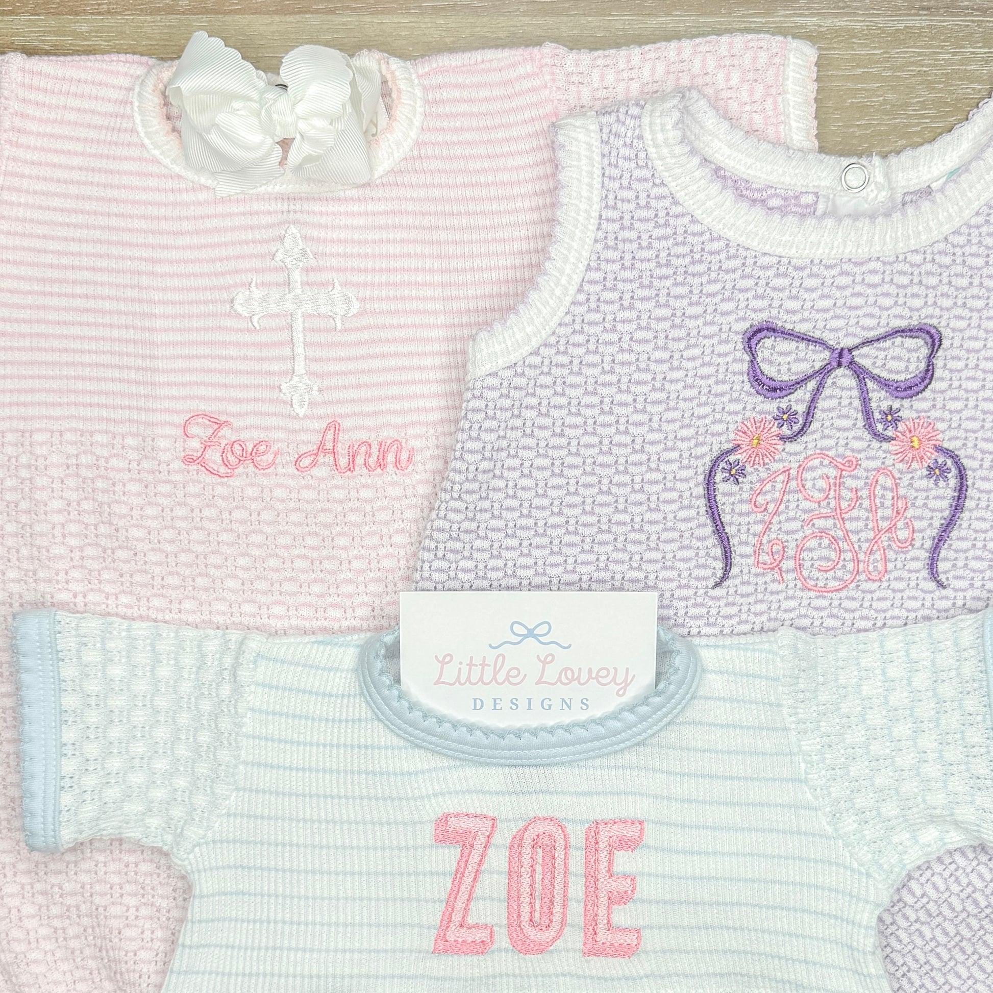 - This listing is for (1) embroidered blue or pink knit bubble. Please note that this style does have the ruffle trim at the bottom.